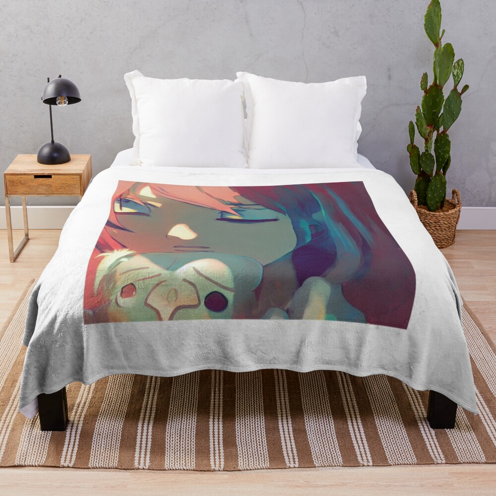Anime Girl Face Throw Blanket